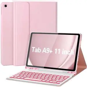 Keyboard Case for Galaxy Tab A9 Plus 5G 11 Inch 2023 (SM-X210/X216/X218), 7 Color Backlit Detachable Tablet Keyboard Cover with S Pen Holder for Samsung Galaxy Tab A9+ 11" (Pink)