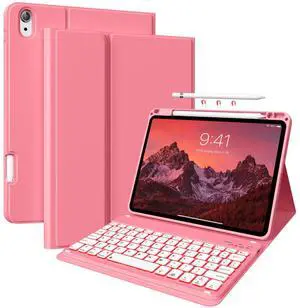 aoub Compatible with iPad Air 11 Inch Case with Keyboard & iPad Air 5th/ Air 4th Generation - 7-Color Backlit, Detachable Folio Cover for Air 11-inch M3/M2 (2025/2024), Pink