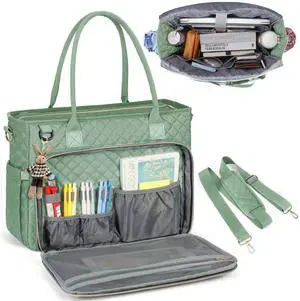 RAINSMORE Teacher Tote Bag 15.6 inch Laptop Bag for Women Work Bags Laptop Tote Nurse Bag Professional Computer Messenger with Insulated Pocket, Laptop Briefcase for Office, College,Green-white