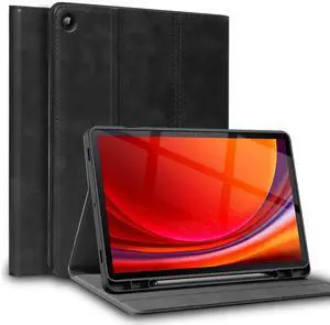 Gexmil Genuine Leather Case for Samsung Galaxy Tab S9/S9 FE 11 Inch with Pencil Holder,Shockproof Protective Adjustable Kickstand Smart Premium Folio Flip Tablet Cover, Black