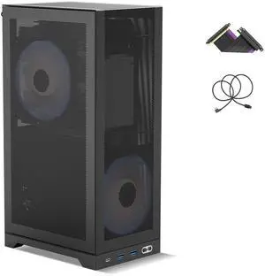 Stratos SFF Gaming PC Case: Mini-ITX, SFX PSU, PCIe 4.0 Riser, 240mm AIO Ready, with 4X PWM ARGB Fans (600-2000rpm) + Controller, Triple-Slot (125mm) GPU Support