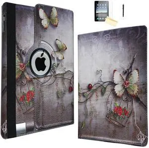 JYtrend Case for iPad 9.7 2018/2017, Rotating Stand Smart Magnetic Auto Wake Up/Sleep Cover for A1893 A1954 A1822 A1823 MP2G2LL/A MP2J2LL/A MPGT2LL/A MPGW2LL/A MP2F2LL/A MP2H2LL/A (Butterfly Flower)