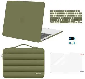 MOSISO Compatible with MacBook Air 13 inch Case M5 2026 M4 2025 M3 M2 2024-2022 A3449 A3240 A3113 A2681, Hard Case&Puffy Bag&Keyboard Cover&Webcam Cover&ScreenFilm for MacBook Air 13.6, Olive Green