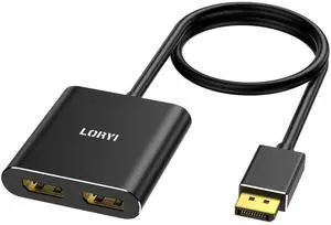 Loryi Displayport to Dual DisplayPort Splitter Adapter,4K60Hz MST Displayport hub 1 in 2 Out Display Port for Dual Monitors,DP1.4 Display Port Splitter for Desktop, Laptop,Extend Display