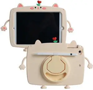 Cartoon Case for iPad mini 1/2/3/4/5 7.9" MONEHOYSY Cute Soft Silicone Kickstand [Drop Proof,Shock Proof,Anti Slip] Back Stand Cover Case for Kids Children Teens Girls Boys (Cat)