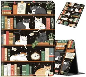 Case for Fire HD 10 & Fire HD 10 Plus Tablet (13th/11th Generation, 2023/2021 Release, 10.1"), PU Leather Folio Smart Cover with Multi-Angle Kickstand, Auto Sleep/Wake, Cozy Bookworm Cats