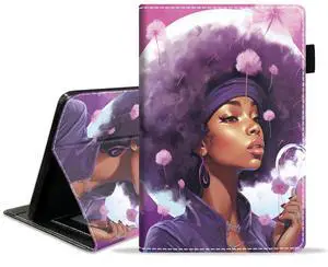 ERWYTYIOI Case for Fire HD 10 Tablet 10.1" (9th/7th Generation, 2019/2017 Release), Slim PU Leather Stand Cover with Card Slot & Auto Wake/Sleep, Purple Hair Hairstyle African American Girl