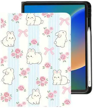 Cute Kawaii Bunny Bow for iPad Pro 11 Inch Case 4th/3rd/2nd Generation 2022/2021/2020 with Pencil Holder, Auto Sleep/Wake and Multiple Viewing Angles, Leather Soft TPU Back Cover