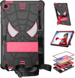 Dteck for Galaxy Tab S6 Lite 10.4" (SM-P610/P613/P620) Shockproof Case with Kickstand/S Pen Holder/Shoulder Strap, 3 Layers Protection, Protective Rugged Cute Cool Spider Hard Shell Cover, Black/Rose