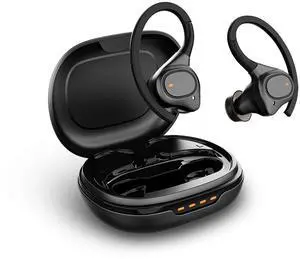 Mosonnytee BE Wireless Over-Ear Bluetooth Running Headphones, IPX5 Waterproof, 50H Playtime with Wireless Charging Case (Black) (Sports)