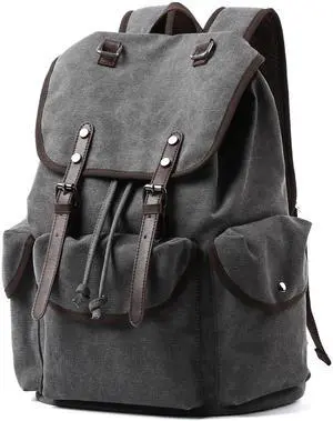 MOYYI Vintage Canvas Backpack for Men Women, Retro Backpack Fits 15.6 Laptop, Casual Flap Backpacks for College, Durable Leather Trim Rucksack for Work Camping Traveling Grey