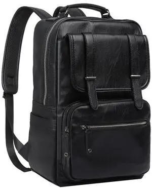 MOYYI Black Leather Backpack for Men Waterproof Fit 15.6 inch Laptop Backpack Work Commute Casual Daypack