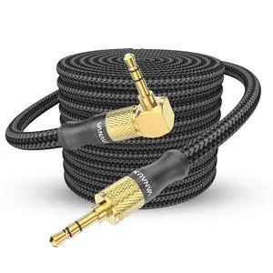 VANAUX Aux Cable for Car 90 Degree Right Angle Auxiliary Cable Stereo Aux Jack to Jack Cord Compatible for Mp3 Player, Car Stereos, Smartphone, Speakers, Headphone and More(26Ft/8M)