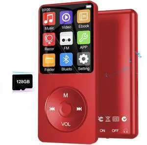 128GB MP3 Player with Bluetooth 5.3, Ninsiden 1.8-Inch Music Play Built-in HiFi Speaker,Portable MP4/MP3 Player for Kids with Music,Video,FM Radio, E-Book Reader, Voice Record, Photo Viewer, Red