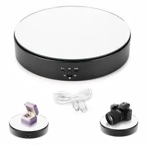 Leadleds Motorized Rotating Display Stand, 7.7" Black Top Mirror USB and Battery Operated Display Turntable for Photography, Video, Product, Shoes, Cake Stand