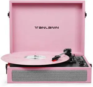 Vintage 3-Speed Bluetooth Record Player with Built-in Speakers, Retro LP Vinyl Player Portable Turntable with USB Recording, Bluetooth Music Playback, RCA/AUX/Headphone Jack, Pink