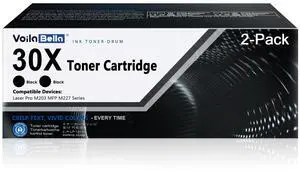 VoilaBella 30X CF230X High Yield Black Toner Cartridge (2-Pack, Black) Replacement for HP 30X 30A CF230X CF230A Compatible with Laser Pro MFP M203dw M227fdw M227fdn M203d M203dn M227sdn Printer