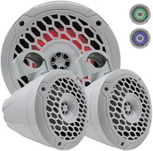 Warzone WZ652MTW 6.5-Inch Marine Box Speaker with RGB LED Lighting, 700W Max, 4 Ohms, White Injection Cone with Rubber Edge and Neodymium Magnet (2 Speakers)