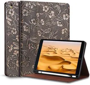 Gexmil for iPad Air 10.5 Inch Case,3rd Generation(2019) Genuine Leather Cover with Pencil Holder (Butterfly Pattern)