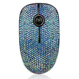 blingbybri Luxury Bling Dazzling Crystal Rhinestone 2.4G Wireless Mouse for Laptop, Notebook, PC, Computer, MacBook, Girls Gift - AB Blue