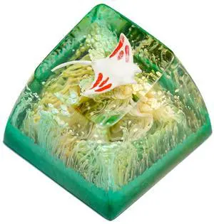 Kohaku Koi Fish Artisan Keycap Green Ocean R1 SA Profile Custom Keycaps 1U ESC Handmade Gaming Resin Key Cap Cherry MX Switch Compatible Mechanical Keyboard Koi Lover Gift