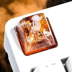 Jellyfish Artisan Keycap Golden Coral R1 SA Profile Custom Sea Creature Keycaps 1U ESC Handmade Gaming Sea Resin Key Cap Cherry MX Switch Compatible Mechanical Keyboard Jellyfish Lover Gift