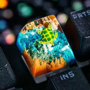 Sea Turtle Artisan Keycap Yellow and Light Blue Ocean R1 SA Profile Custom Sea Creatures Keycaps 1U ESC Handmade Gaming Resin Key Cap Cherry MX Switch Compatible Mechanical Keyboard Turtle Lover Gift