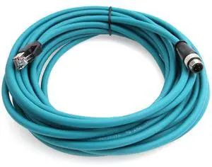Eonvic M12 D Code 4 Pin Male to RJ45 E4 Plug High Flex Cat5e Industrial Ethernet PVC Cable for Automation Application (50M, Blue)