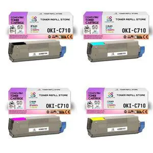 Toner Refill Store Compatible 43866104 43866103 43866102 43866101 Toner Cartridge Replacement for The Oki C710 (Black, Cyan, Magenta, Yelow, 4-Pack)