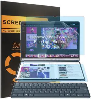 4 Pack Blocking Blue Light Screen Protector for 2024-2023 Lenovo Yoga Book 9i 2-in-1 13.3" 2.8K Dual Screen OLED Touch Laptop- Anti Blue Light Glare Shield (2 Sets - Primary and Secondary Screens)