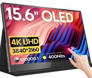 HONGO 4K OLED Portable Monitor, 15.6 Inch Touchscreen UHD 3840X2160 100% DCI-P3 100000:1 Multi-Touch HDR USB-C HDMI Travel Monitor for Laptop PC Phone Mac Xbox PS5/PS4