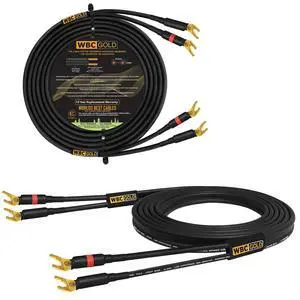 WORLDS BEST CABLES 50 Foot WBC-GOLD-LOCAP-SPKR-14 AWG - Low-Capacitance - Low-Inductance - High Purity OFC - Audiophile HiFi Speaker Cable Pair with Eminence Gold Banana Plugs