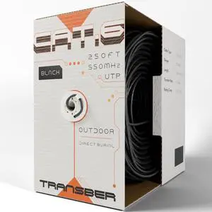 Transber, CAT6-250ft, Direct Burial Ethernet Cable, UTP, 10Gbps, 550Mhz, 23AWG, Easy Pull Box, UV Resistant, Waterproof, Outdoor(Black)
