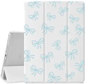 JOYLAND Light Blue Bow Pattern Case for iPad Air 11 Inch M3(2025) / M2(2024), iPad Air 5th(2022) / 4th (2020) Gen 10.9 Inch, Pencil Holder & Clear Transparent Back & Trifold Smart White Cover