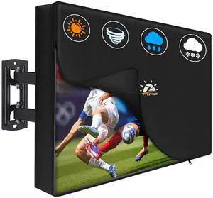 Garnetics Outdoor TV Cover 90 Inch Waterproof, Weatherproof TV Enclosures with Smart Shield Screen Protectors, Ideal for Outdoor Use, Moving, and Storage - Black