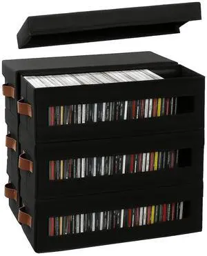 Coorganisers 6 Packs CD Storage Box with Visible Window, Stackable CD Case Holder with Dustproof Lid and Handles, Holds Up to 222 CDs in Full Jewel Cases-15.75 x 6.10 x 5.31 Inches-Black