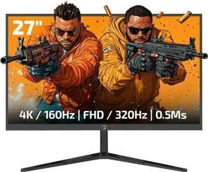 GAMEPOWER Rapid Dual 27 Inch 4K Gaming Monitor, 2160P 160Hz, 1080P 320Hz, 0.5ms Fast IPS, HDR 400, Adaptive Sync, Frameless, Blue Light Filter, Speakers, HDMI 2.1 DP 1.4, 135% sRGB, VRR Support