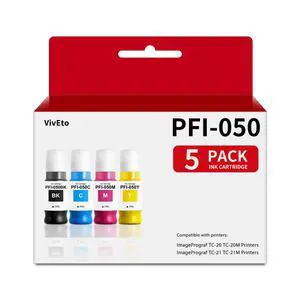 PFI-050 Pigment Ink Tank Set Replacement for Canon PFI-050 PFI050 PFI 050 Ink Cartridge Works with imagePROGRAF TC-20 TC-20M TC-21 TC-21M Large Format Printes, 4 Pack PFI-050 Pigment Ink Refill