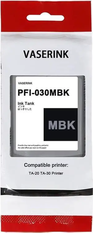 VASERINK PFI-030MBK Ink Cartridge, Matte Black, 55ML, Compatible with imagePROGRAF TA-20, TA-30, TM-240, TM-340, 1650 Pages, 1-Pack