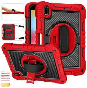 UUcovers for iPad (A16) 11th Generation 11 inch 2025 & iPad 10th Generation Case 10.9 inch 2022, 360 Rotating Stand Cover with Pencil Holder/Hand Strap/Shoulder Strap Kickstand Cover, Red + Black