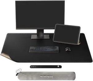 Chihein 43" x 24" 3XL Desk Mat with Cork & PU Leather (Black), Dual Sided Desk Pad, Waterproof Computer Desk Mat for Gaming, Office, Home