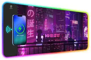 ToLuLu RGB Gaming Wireless Charging Mouse Pad, 15W 10 Light Modes LED Mouse Pad Computer Keyboard Mat Mousepad, 800x300x4MM Extended Large Desk Mat for Gaming, MacBook, Laptop, PC, Neon Purple Sign