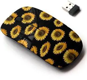 2.4G Wireless Mouse with Cute Pattern Design for All Laptops and Desktops with Nano Receiver - Sunflowers on Black