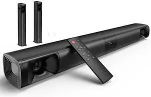 R50 Bluetooth Computer Speakers, 3.5mm PC Sound Bar for Desktop Monitor, Wired USB Powered & Colorful LED Lights with Switch Button, Surround Sound Soundbar PC Spearkers for Computer