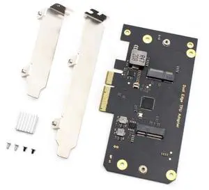 Dual Edge TPU PCIe Adapter for Two Coral M.2 Accelerator Cards,PCIe Gen3 x4 to 4X Gen2 x1 Lane Splitter with Heatsink,AI Edge Computing