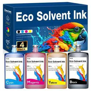 Eco Solvent Ink Refill 500ml 4-Color Set for DX4 DX5 DX7 DX9 DX10 DX11 XP600 TX800 I3200 I1600 Printhead ues for Wide Format, Grand Format Printers Mimaki, Roland, Mutoh