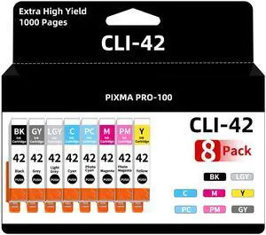 Greenland Office CLI-42 Ink Cartridges Compatible for Canon PRO 100 Ink Cartridge for Canon CLI-42 CLI42 CLI 42 Ink Cartridges Value Pack for Pixma PRO-100 PRO-100S Printer(8 Color)