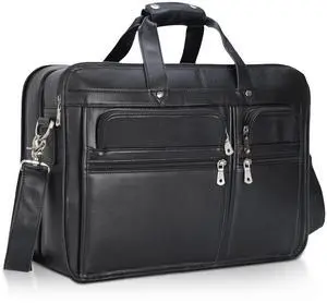 Polare 17'' Napa Leather Briefcase Laptop Attache Case Messenger Bag For Men Fits 15.6'' Laptop
