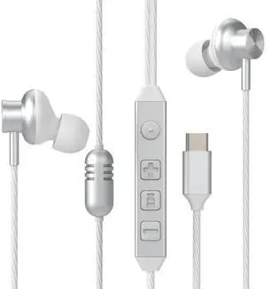 Bhvrtls USB-C in-Ear Wired Headphones,Earbuds3-Year Warranty, with high-Fidelity Sound Card, 5-Mode Audio, Low-Latency Gaming, KTV Vocal Enhancement-White