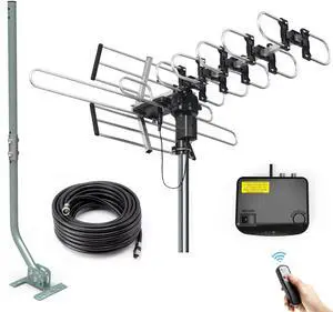 CeKay Outdoor Digital Amplified HDTV Antenna, 360 Controllable Rotating TV Antenna with Directional Motor and Remote Control, High-Gain Signal Reception, with Mounting Pole (UHD-8909+Pole 33")
